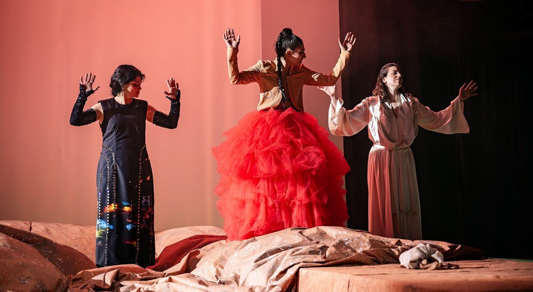 Julia: Kurmandschi und Zazaki sind zwei kurdische Dialekte, die in unserem Stück vorkommen. Sie sind sehr verschieden. Aber während Kurmandschi noch relativ verbreitet ist, ist Zazaki vom Aussterben bedroht und deshalb als immaterielles Kulturerbe von der UNESCO geschützt. Es ist auch Eylüls Sprache. Mit dem Aufbau der türkischen Nation wurde es den Kurd*innen verboten, kurdisch zu sprechen. So haben diese Gesänge eine grosse Bedeutung als Träger des kollektiven Gedächtnisses.