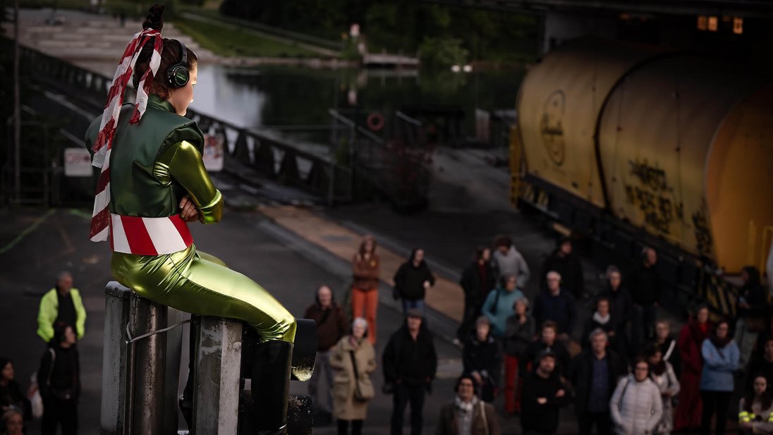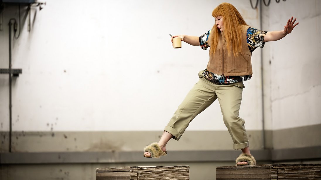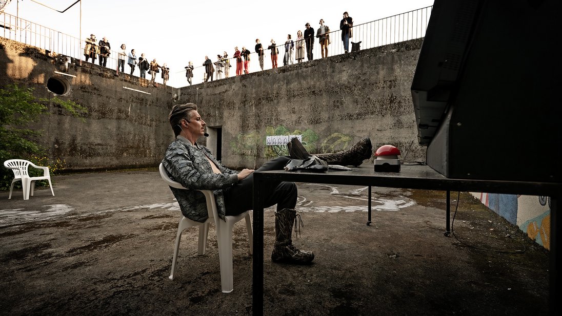 La mise en scène théâtrale est une promenade auditive, menant le public du poste de surveillance au hall d’habitation de la veilleuse de nuit en passant par la cantine de l’usine. Équipé d’écouteurs, le public se déplace d’un poste à l’autre, tout en écoutant le patron, le cuisinier, Clemens, la veilleuse de nuit ainsi qu’une voix évoquant les notions de frontières et de délimitation. Le roman de Gianna Molinari se superpose à l’espace vécu en mouvement, créant un dialogue entre récit et lieux. Chaque endroit donne ainsi naissance à une signification particulière.