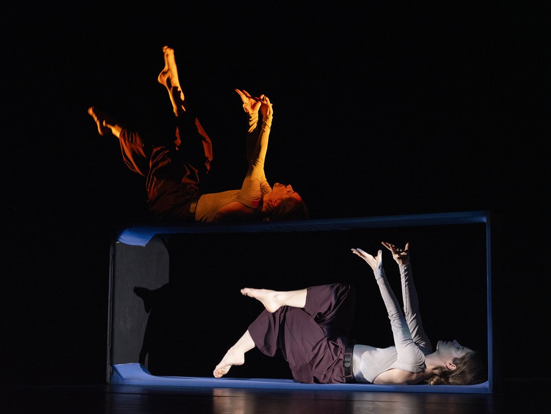 Die Wahrnehmung über gewohnte Interpretationen hinausführen, den Rahmen sprengen und Mehrdeutigkeit zulassen. Rund um ein massives, zentrales Objekt auf der Bühne treten die beiden Schweizer Pionierinnen des Waacking, Tamara Mancini und Branca Scheidegger, in einen aufrichtigen Dialog über diese Ausdrucksform. Dabei hinterfragen sie den zeitgenössischen Bühnenkontext und ihre eigene Position darin. Durch Austausch und Spiel erkundet das Choreografie-Duo die Facetten eines kollektiven Imaginären, das dringend neue Öffnungen braucht – ein Aufruf, der ins Herz trifft.