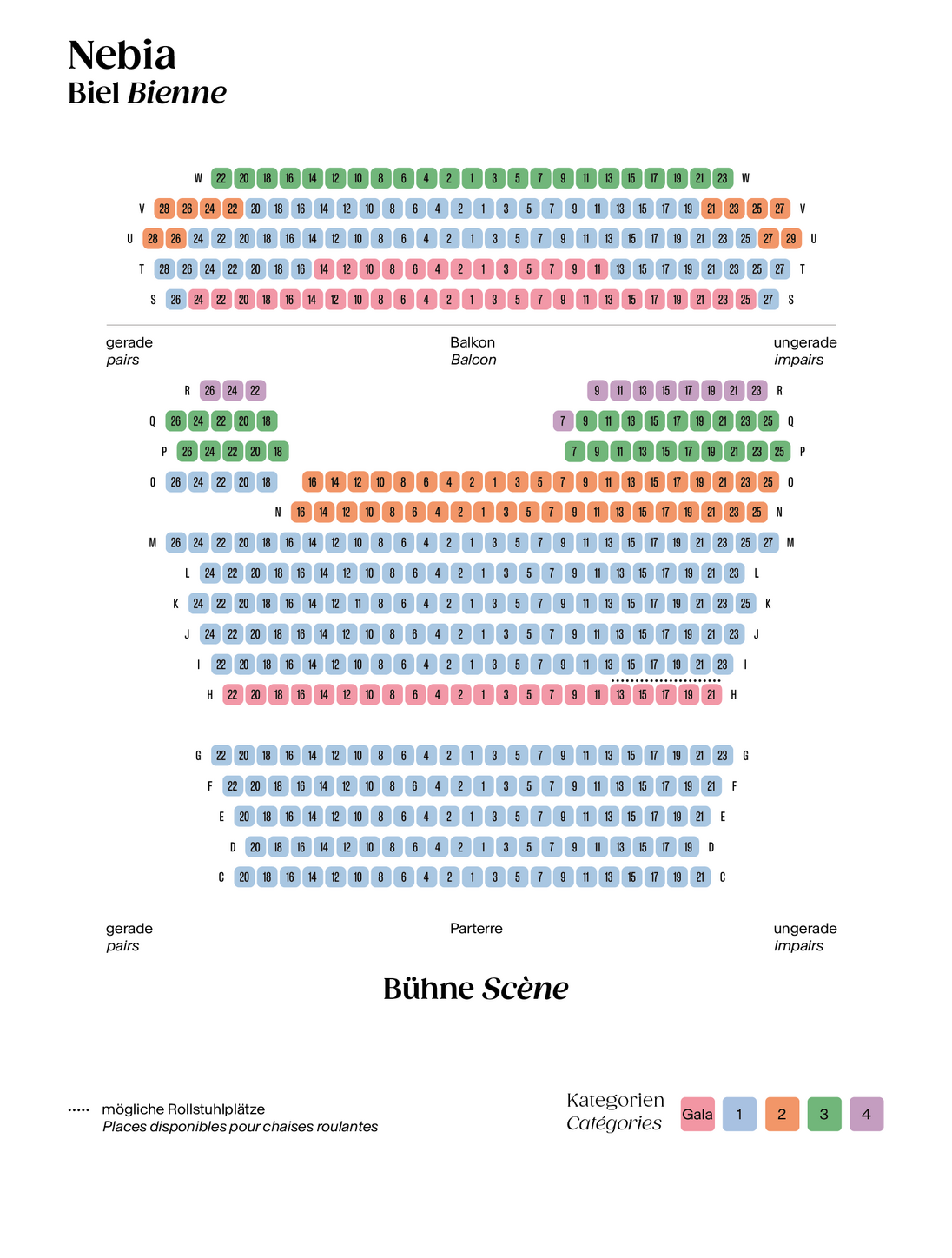 Située à seulement cinq minutes à pied de la gare de Bienne, la grande salle du théâtre Nebia a une histoire riche. Autrefois un cinéma, elle a également accueilli des pièces de théâtre. En décembre 2018, elle a subi des travaux de rénovation qui lui ont donné l'aspect moderne et accueillant que nous connaissons aujourd'hui.