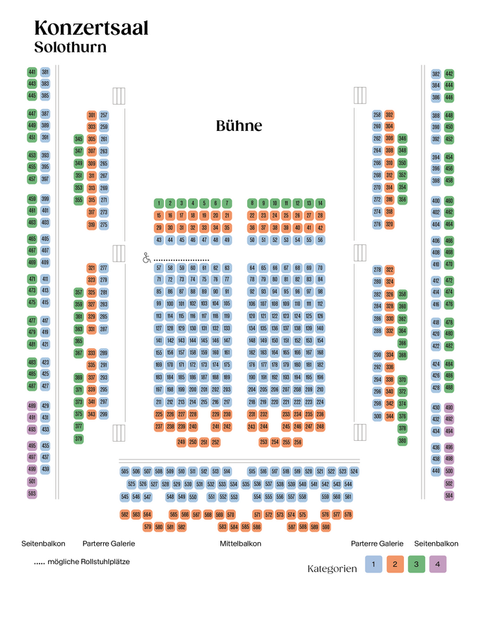 Rollstuhlfahrer*innen werden gebeten, ihre Tickets für Vorstellungen im Konzertsaal Solothurn spätestens eine Woche im Voraus zu reservieren.