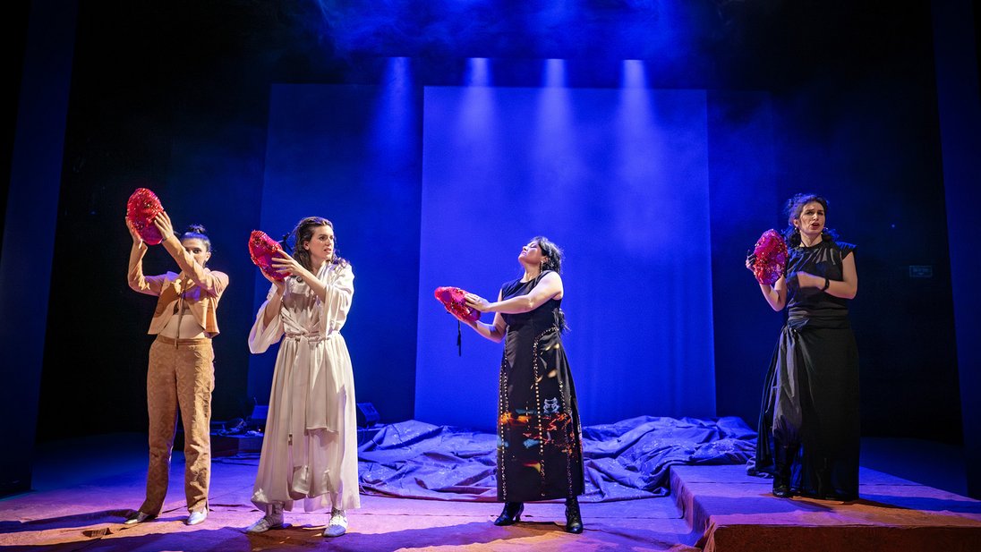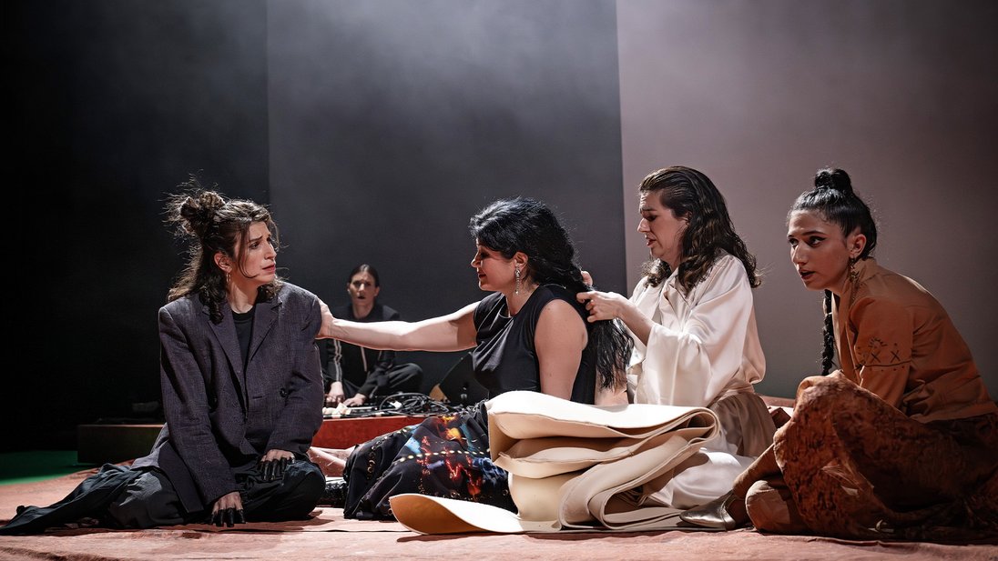 Die Nacht bricht herein. Fünf Frauen lösen sich aus der Dunkelheit, verflechten die Erzählungen ihrer Leben, geprägt von Exil, Trauer, Leid, der Notwendigkeit des Erinnerns kommen zusammen mit dem Impuls des Auflehnens. Ein Strom von Klagen in der anhaltenden Präsenz einer einzigen Nacht. In einer kollektiven Geste der Schwesternschaft antworten diese Stimmen einander, stützen sich gegenseitig und verwandeln das geteilte Wort in einen Akt des Widerstands.